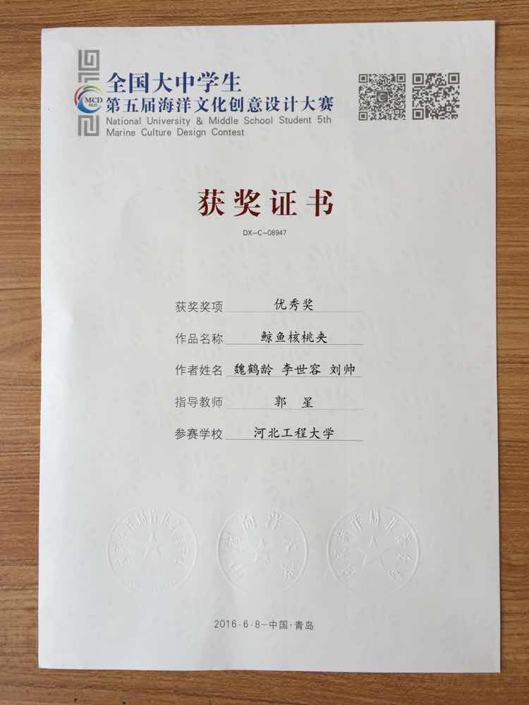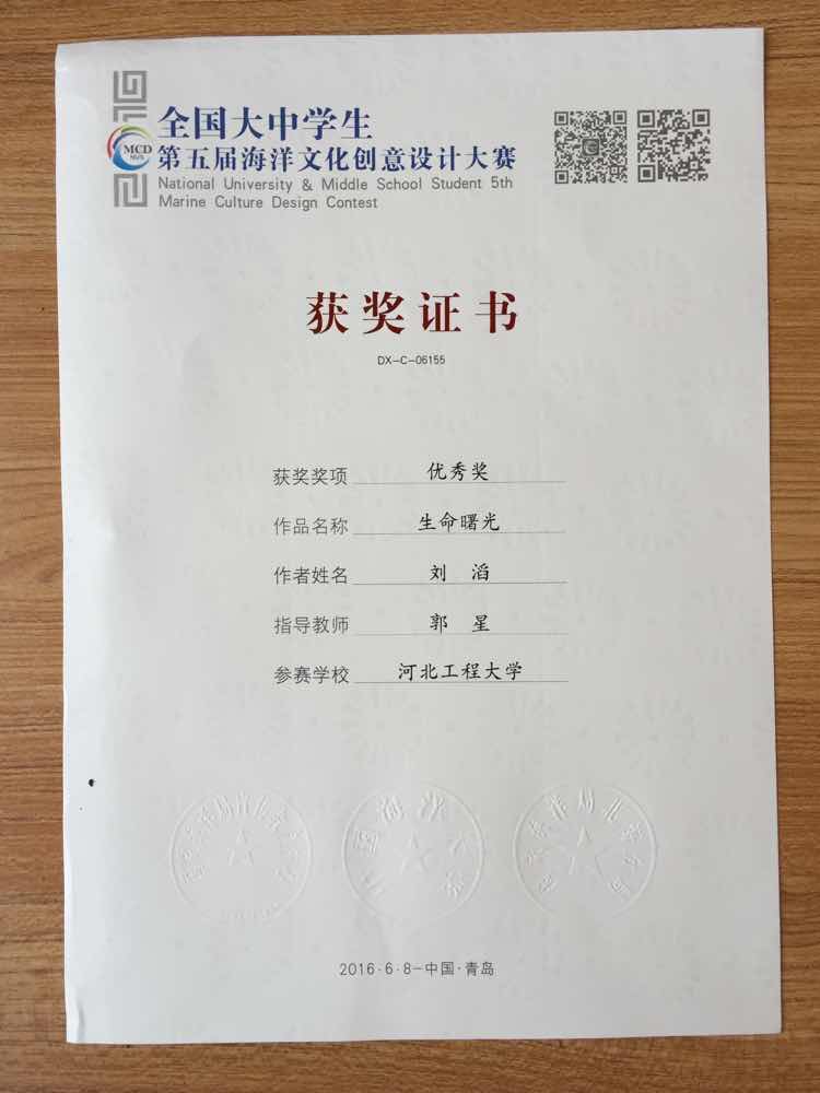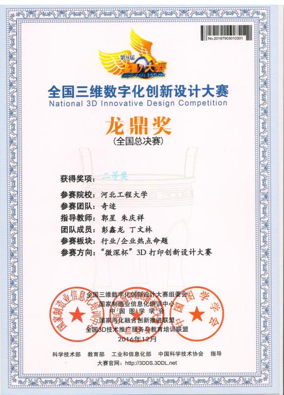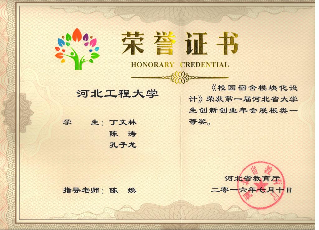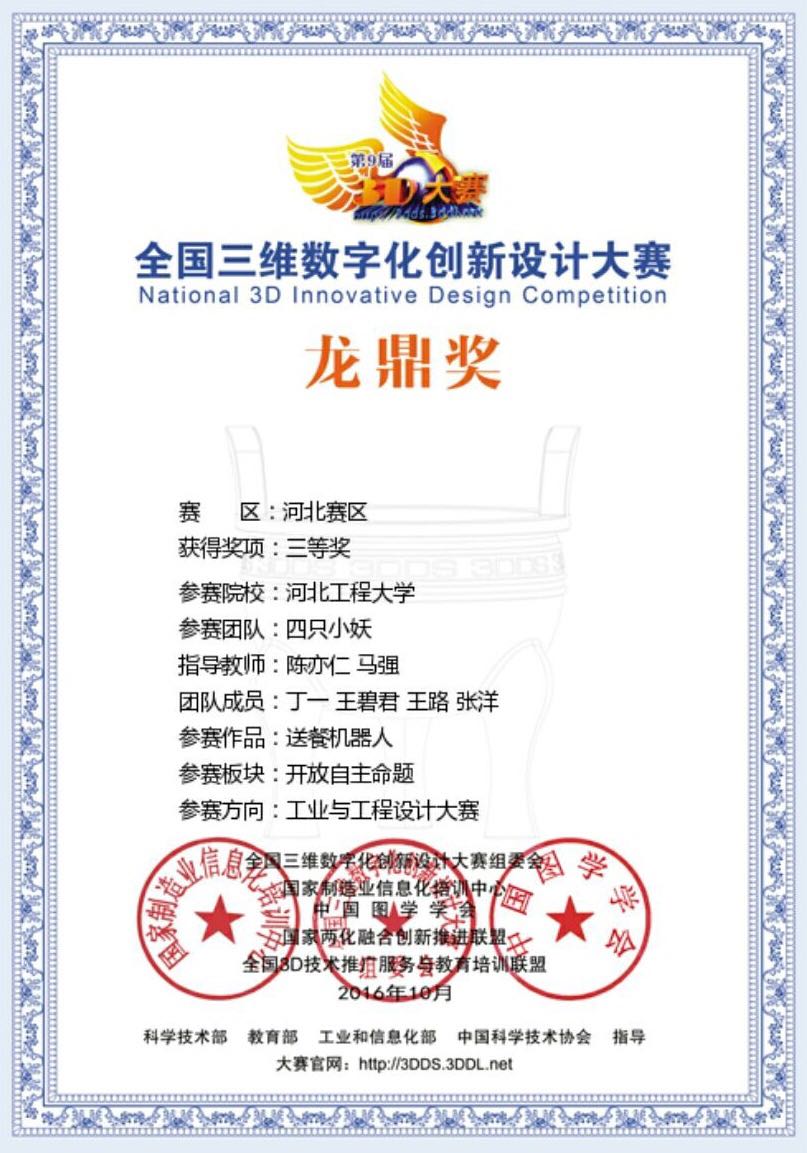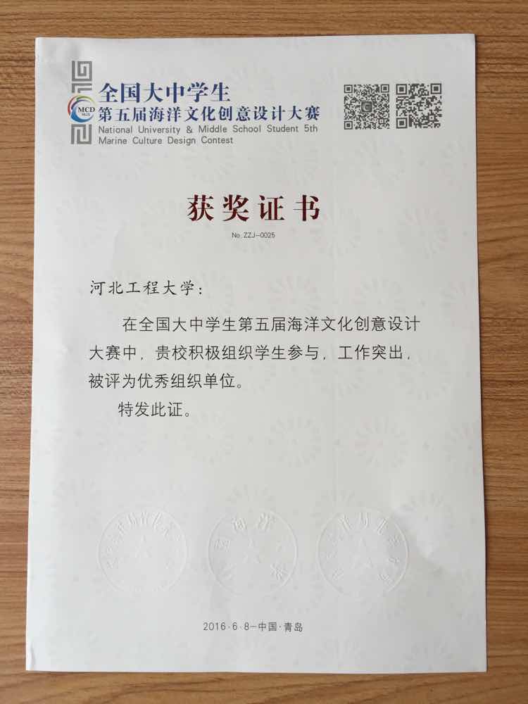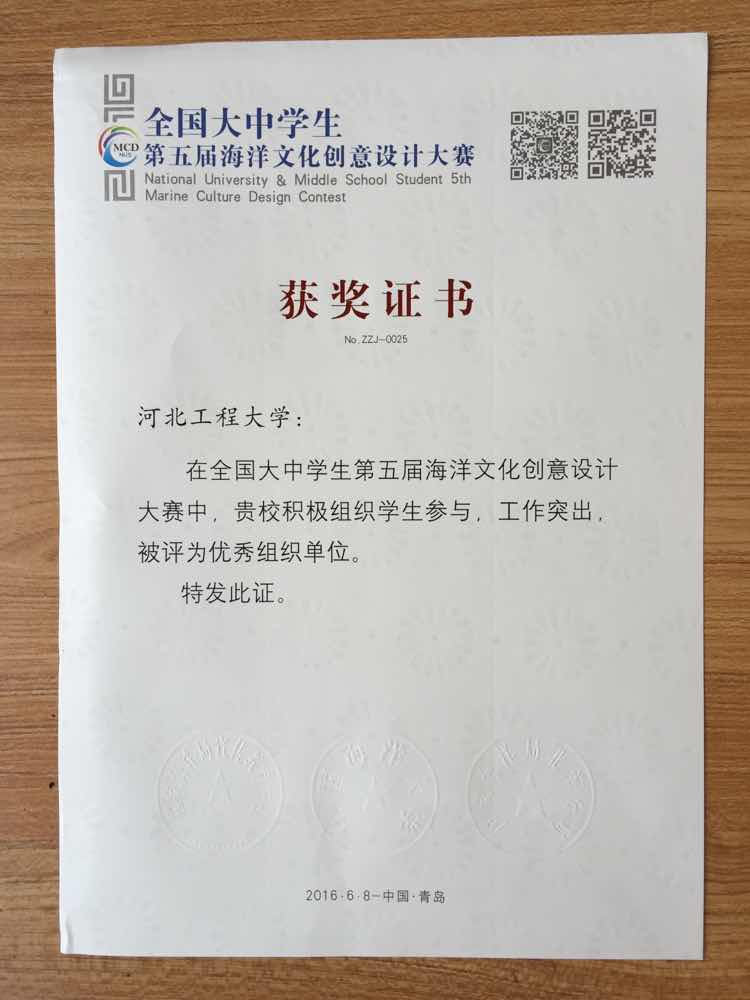 2016年在校大学生参加学科设计竞赛获奖证书一览