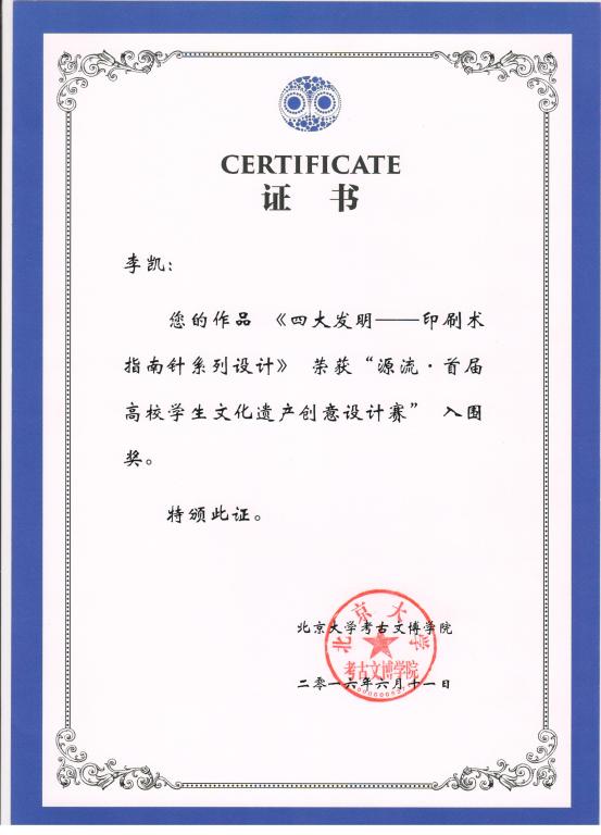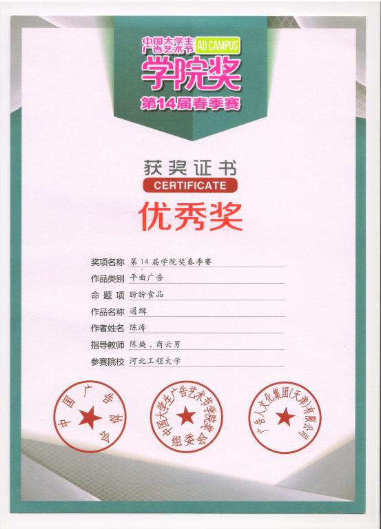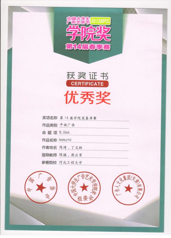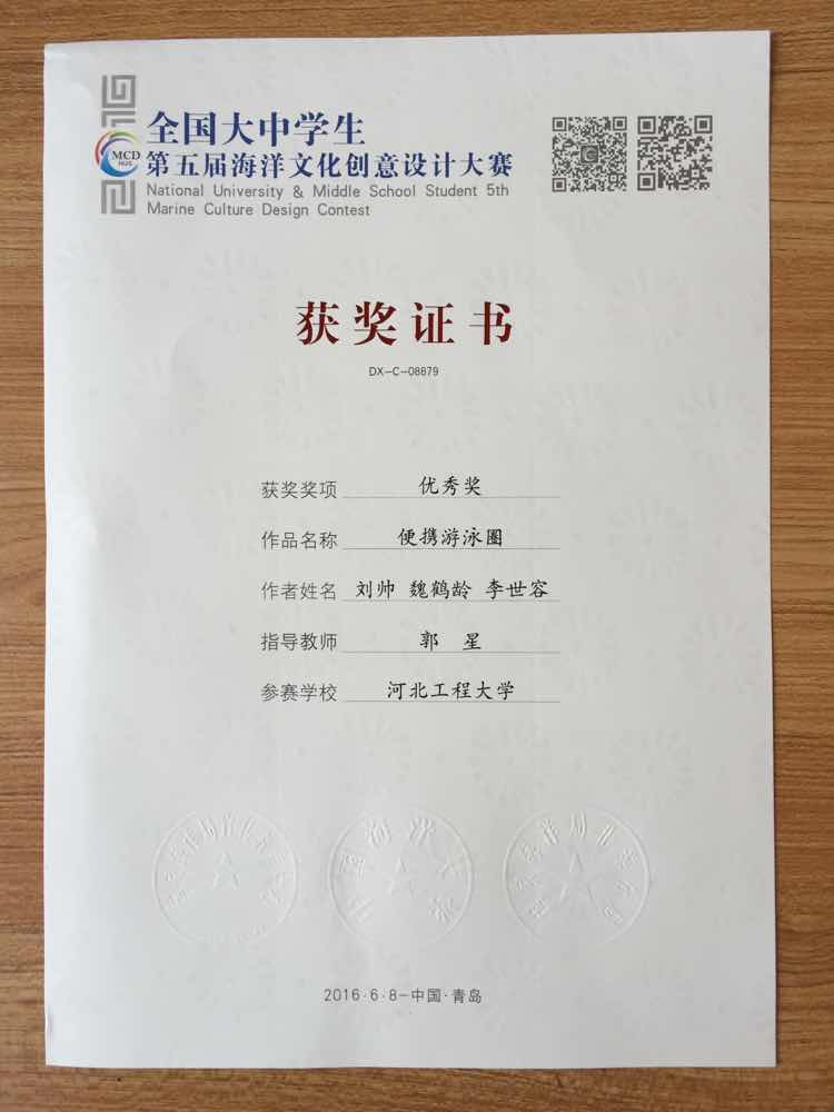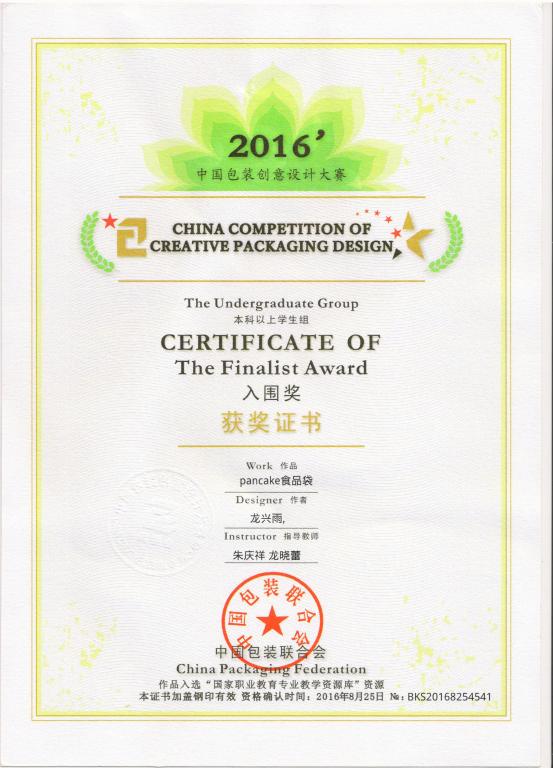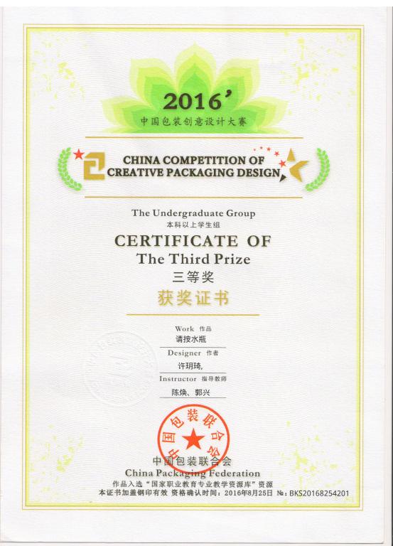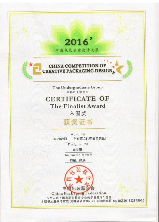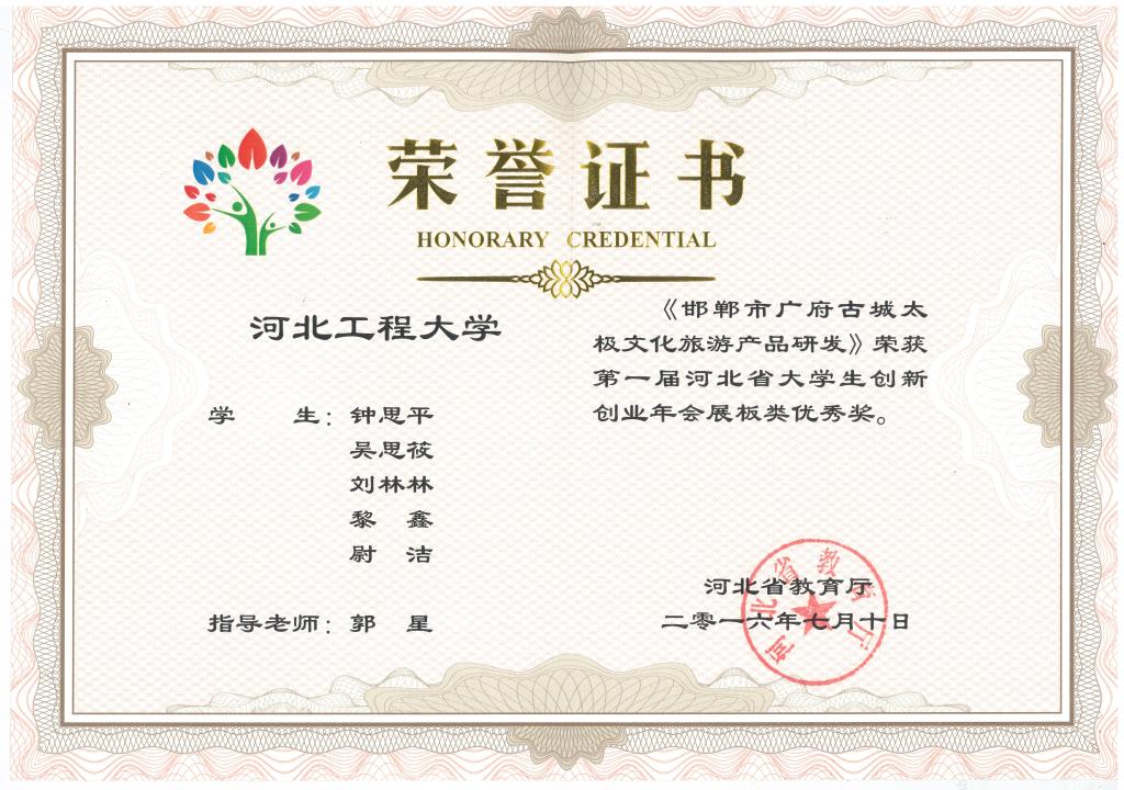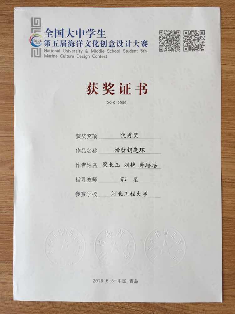 2016年在校大学生参加学科设计竞赛获奖证书一览