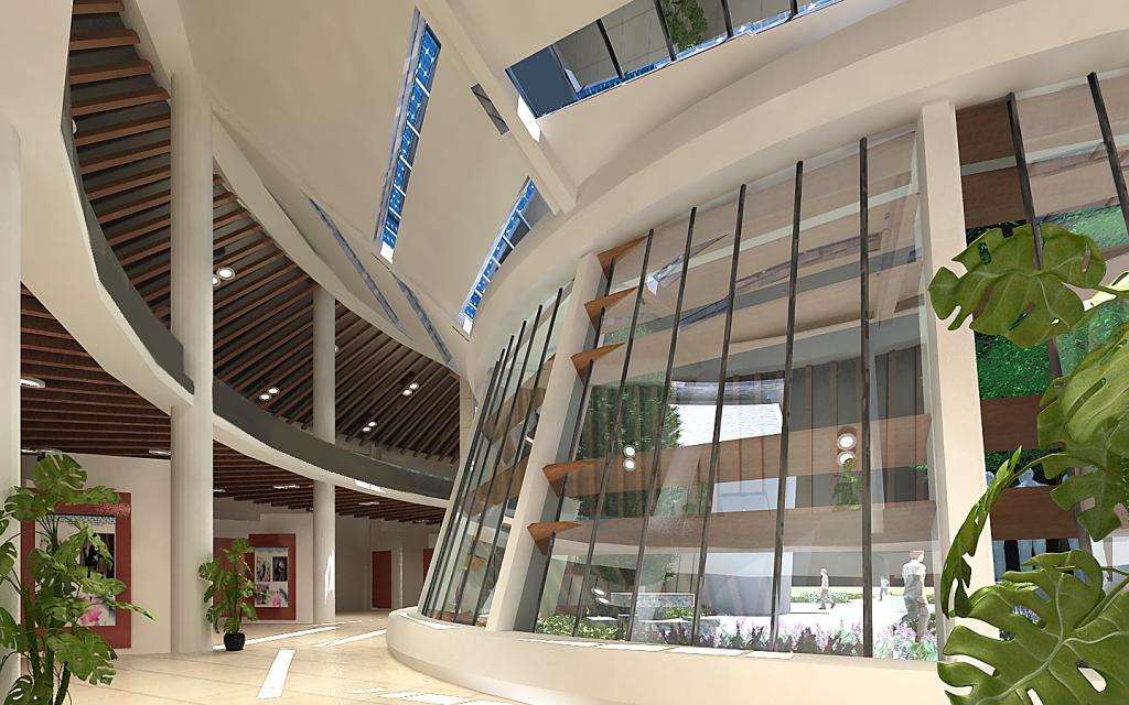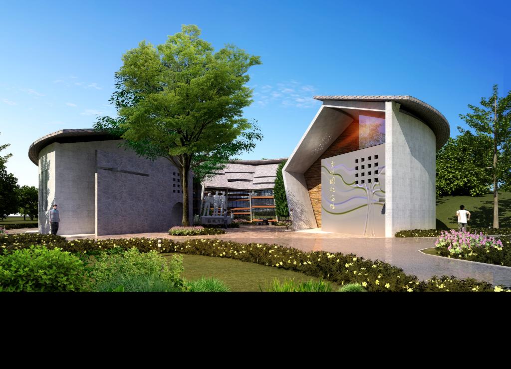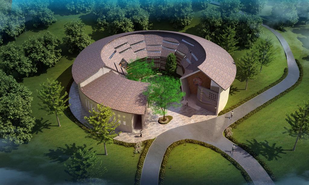 设计以体现李教授扎根山村,持久坚韧的高尚品格。以圆形平面象征“果实”扎根于太行山脉。