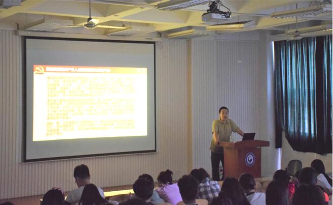 5月8日,吴鹏以“党的光辉历程”为题,清晰的讲解了中国共产党不同历史时期艰苦而卓绝的斗争历程,深刻地阐述了中国共产党登上历史舞台并长盛不衰的必然性。整个讲解过程生动而精彩,赢得了同学们的阵阵掌声。