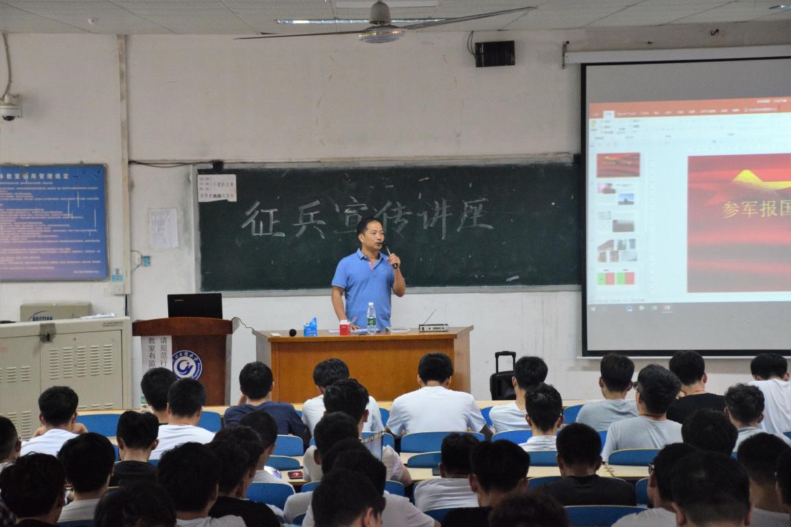 5月15日,我院在五教103教室举办参军报国宣讲活动。辅导员庞建光担任主讲人,学工办主任王世阳以及近300名同学参加了此次活动。