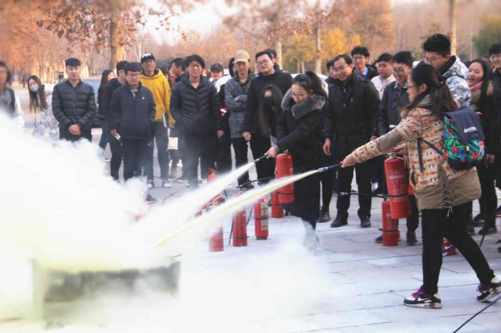 培训中,学院团委邀请邯郸市消安科防火中心工作人员为同学们详细介绍了火灾安全隐患排查、初期火灾扑灭、火灾发生后应急处置等消防安全知识,重点讲解了灭火器等消防器材的使用方法和动作要领,并在老师的指导下,在建筑馆前依次进行了灭火演练。