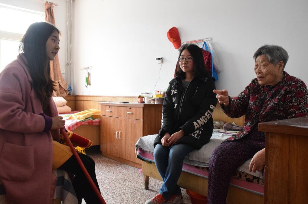 在敬老院,同学们给老人们送去慰问品,并热情地给老人聊天、表演,帮老人叠被子、打扫卫生等,给老人们送去关爱与心灵温暖,使老人的闲暇时光充盈而快乐,受到敬老院领导和老人们的欢迎,也和他们建立了深厚的友谊。